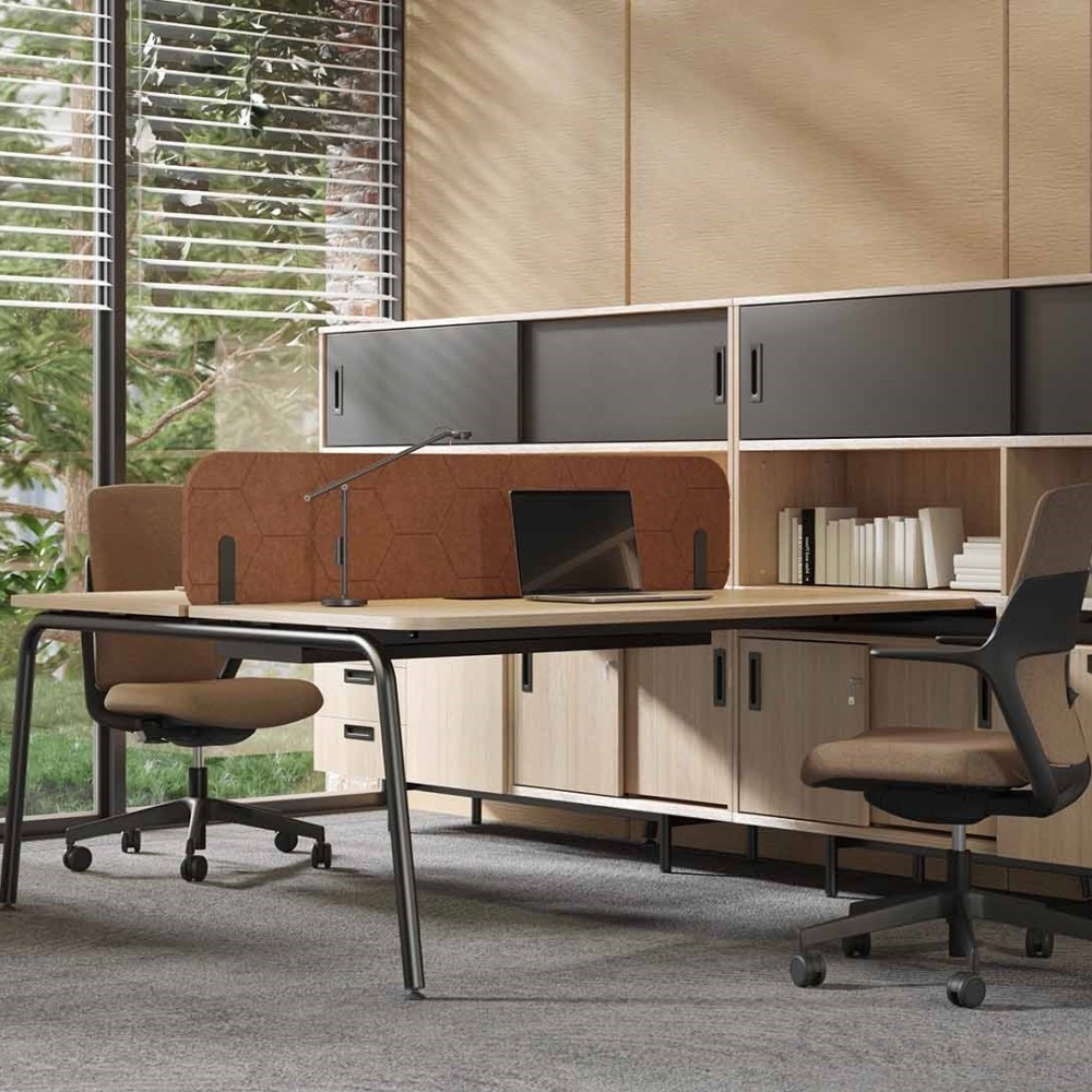 - Écrans de bureau disponibles pour gagner en intimité et en confort acoustique (selon options).