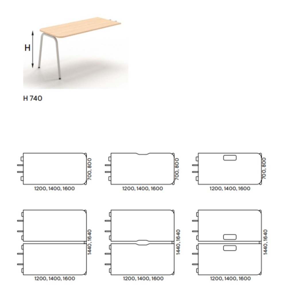 - Hauteur de bureau : env. 740 mm (selon configuration).