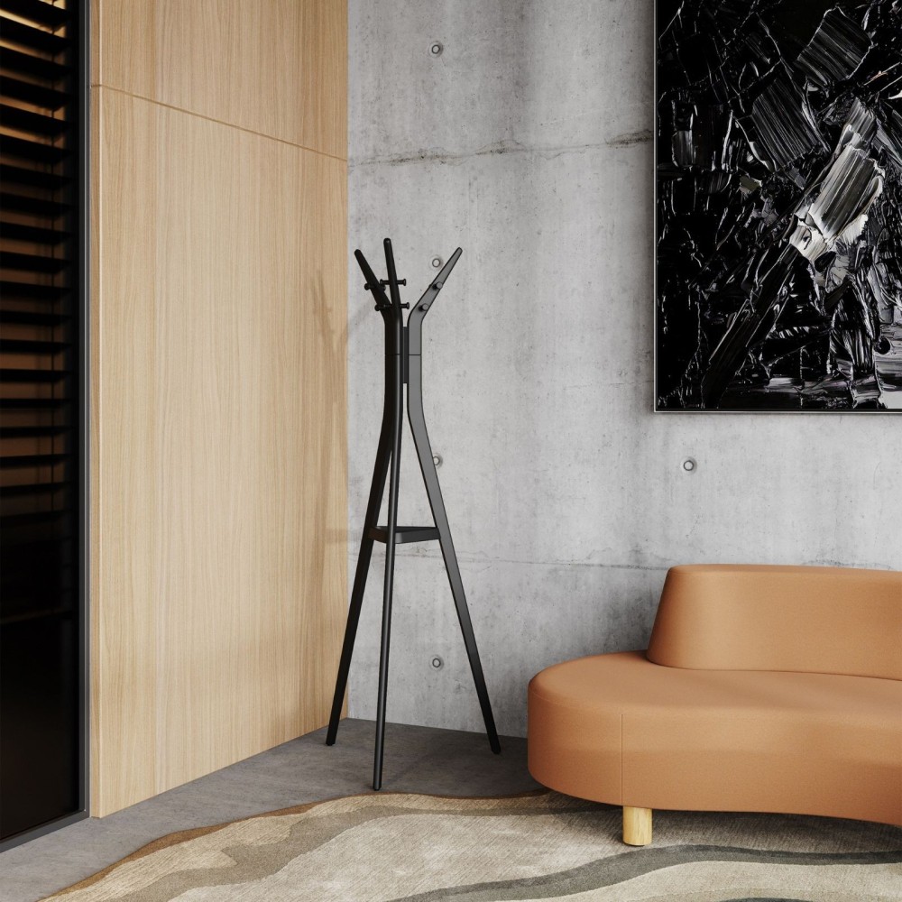 Le porte-manteau TRES:POLY revisite la patère sur pied avec une silhouette inspirée des arbres : simple, stable et immédiatement lisible dans un espace d’accueil. Il est pensé pour organiser vestes, manteaux et sacs au quotidien, sans alourdir l’aménagement.