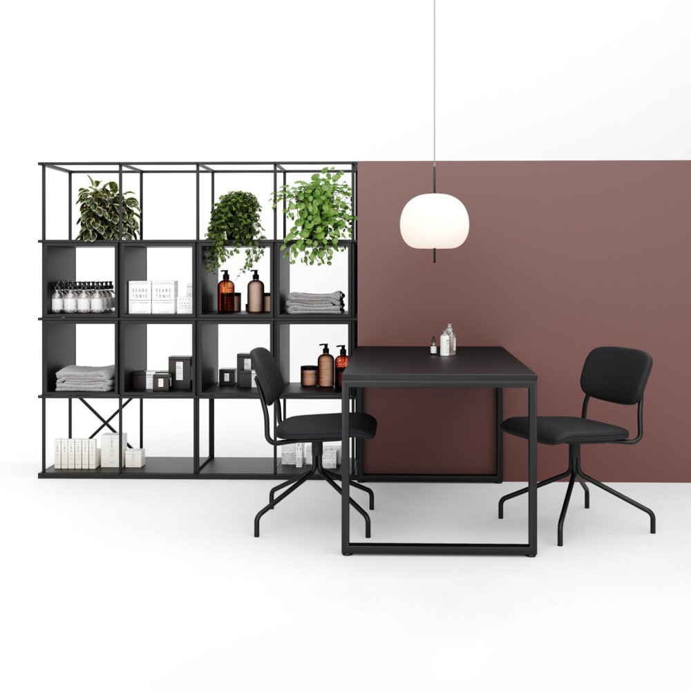 Le Saar Modules SM BS 4x4 est une étagère autoportante modulable en acier. Son format 4x4 te permet de créer un rangement visible, d’exposer de la documentation et de structurer une zone sans fermer l’espace. Et comme le système est modulaire, tu adaptes la configuration à ton usage plutôt que de subir un meuble figé.
