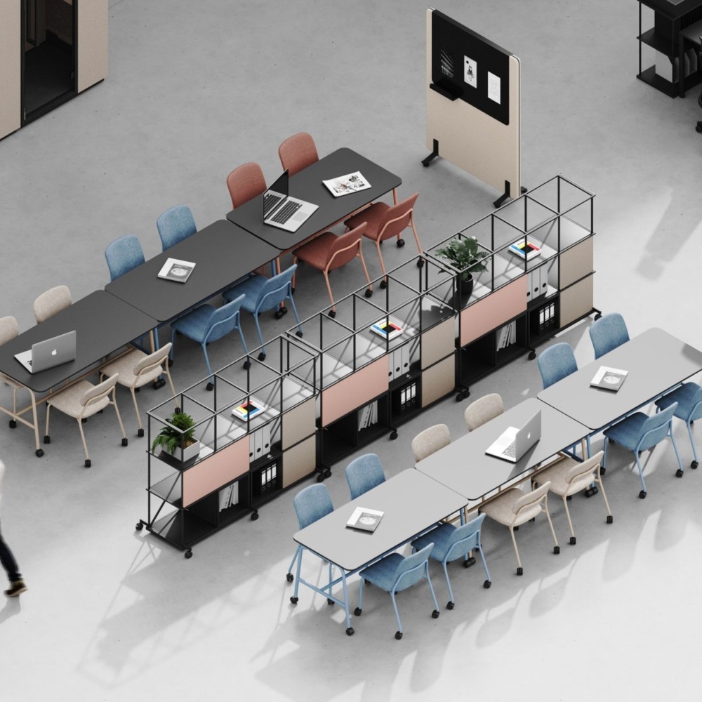 - Coworkings en Suisse : créer une séparation mobile et un rangement partagé entre équipes.