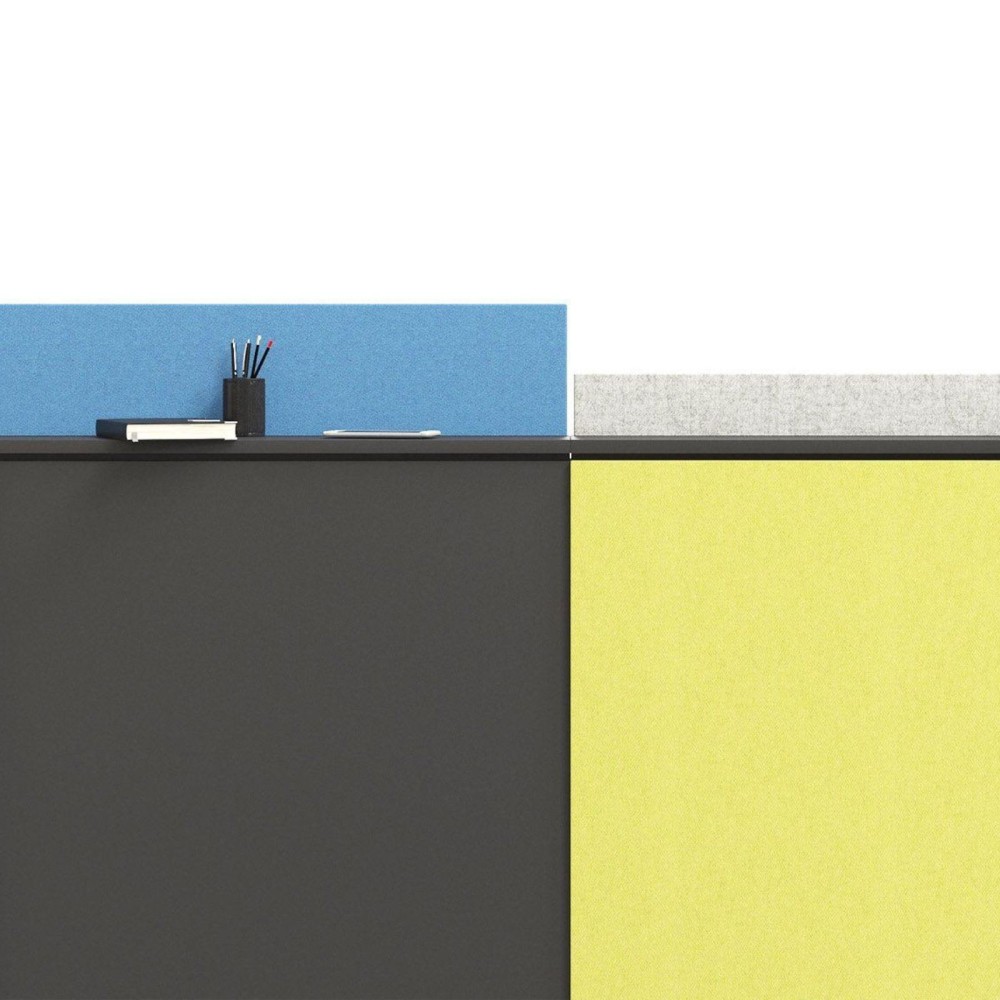Le point fort de DOMINO, c’est la personnalisation de la façade. Les panneaux avant peuvent être en mélamine, en placage ou revêtus de tissu. Ils existent en plusieurs largeurs et en deux épaisseurs visuelles, ce qui permet de créer des compositions plus graphiques, plus chaleureuses ou plus feutrées. C'est une logique de composition libre, pensée pour créer un accueil différent d’un projet à l’autre.