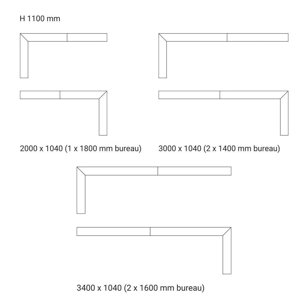 DOMINO n’est pas seulement une façade d’accueil. Le système est conçu pour fonctionner avec des bureaux fixes et assis-debout. Nous recommandons notamment Start-Up, Easy Drive, NOVA U, Q-ACTIVE, mais aussi NOVA A, NOVA O, T-EASY, B-ACTIVE, ACTIVE, EASY ou ROUND. Dans ta configuration, il t'est proposé les options sans bureau, avec Q-ACTIVE ou avec NOVA U.