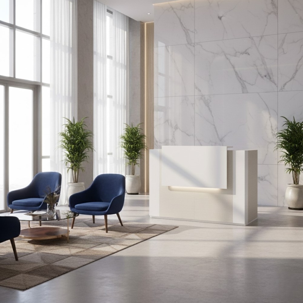 Avec son design prestigieux et ses finitions de qualité, la banque d’accueil Tera est idéale pour créer une atmosphère élégante et professionnelle. Adaptée aux cabinets médicaux, entreprises, hôtels et administrations, elle combine esthétique, modularité et praticité. Grâce à notre service clé en main avec livraison et montage inclus, ton espace d’accueil est prêt à l’emploi dès l’installation.