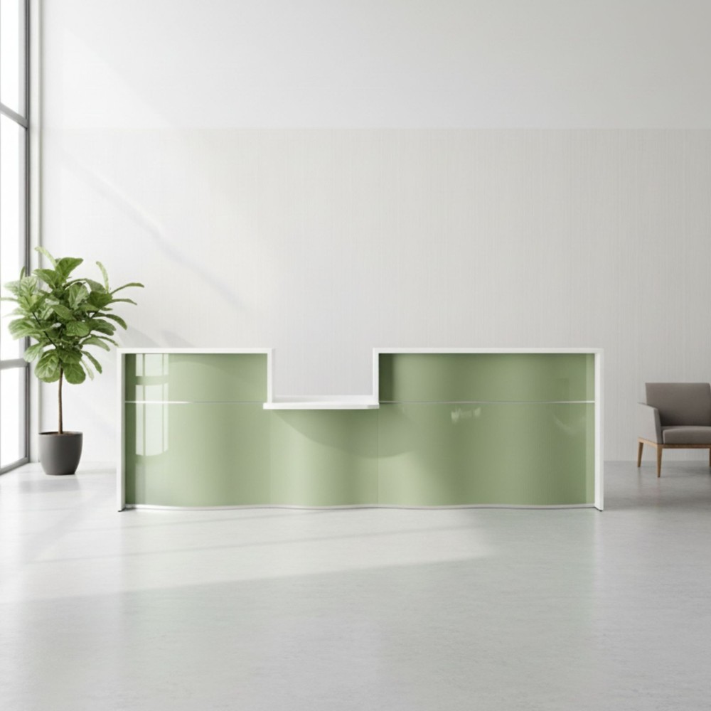 La banque Wave se distingue par ses lignes fluides et sa façade brillante aux ondulations uniques. Grâce à sa conception modulaire, elle s’adapte à différents espaces et configurations (droites ou en angle). Son large choix de couleurs permet d’harmoniser ton accueil avec ton identité visuelle.