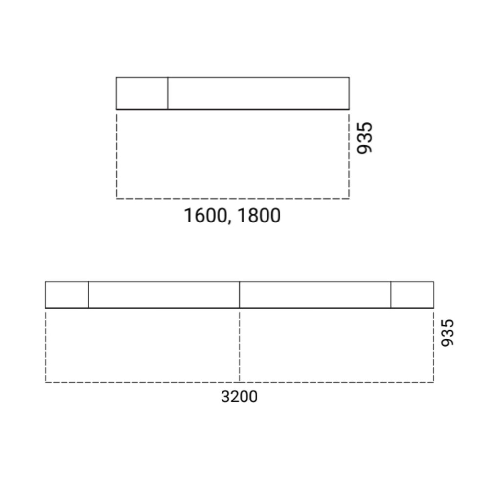 - Version droite double poste : 3200 mm