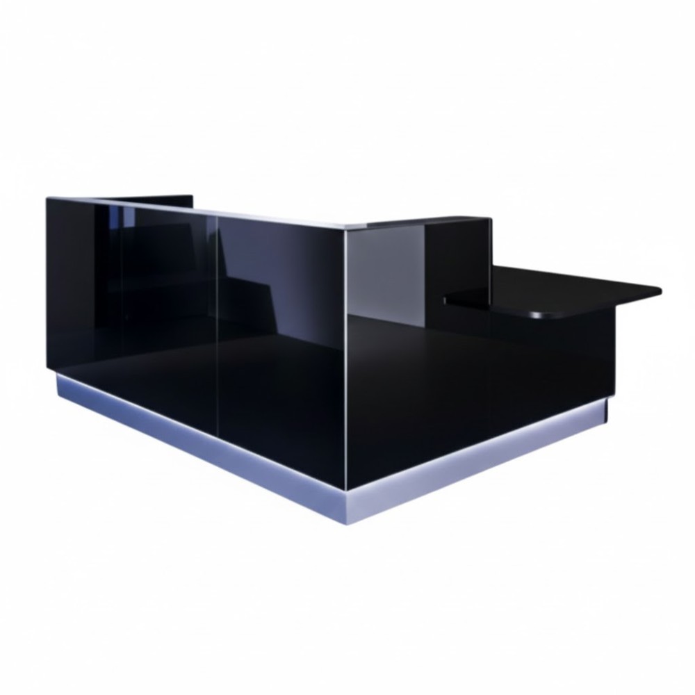 La banque d’accueil Linea allie design épuré, accessibilité et praticité. Ce modèle intègre un angle avec module bas et tablette intégrée, disponible à gauche ou à droite selon ton espace. Idéal pour l’accessibilité des personnes à mobilité réduite, il conserve toute l’élégance de la façade en verre et de l’éclairage LED intégré.
