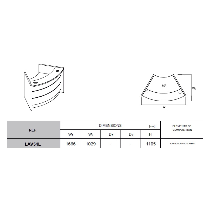L. 166,6 x P. 102,9 x 91,7 x H. 110,5cm