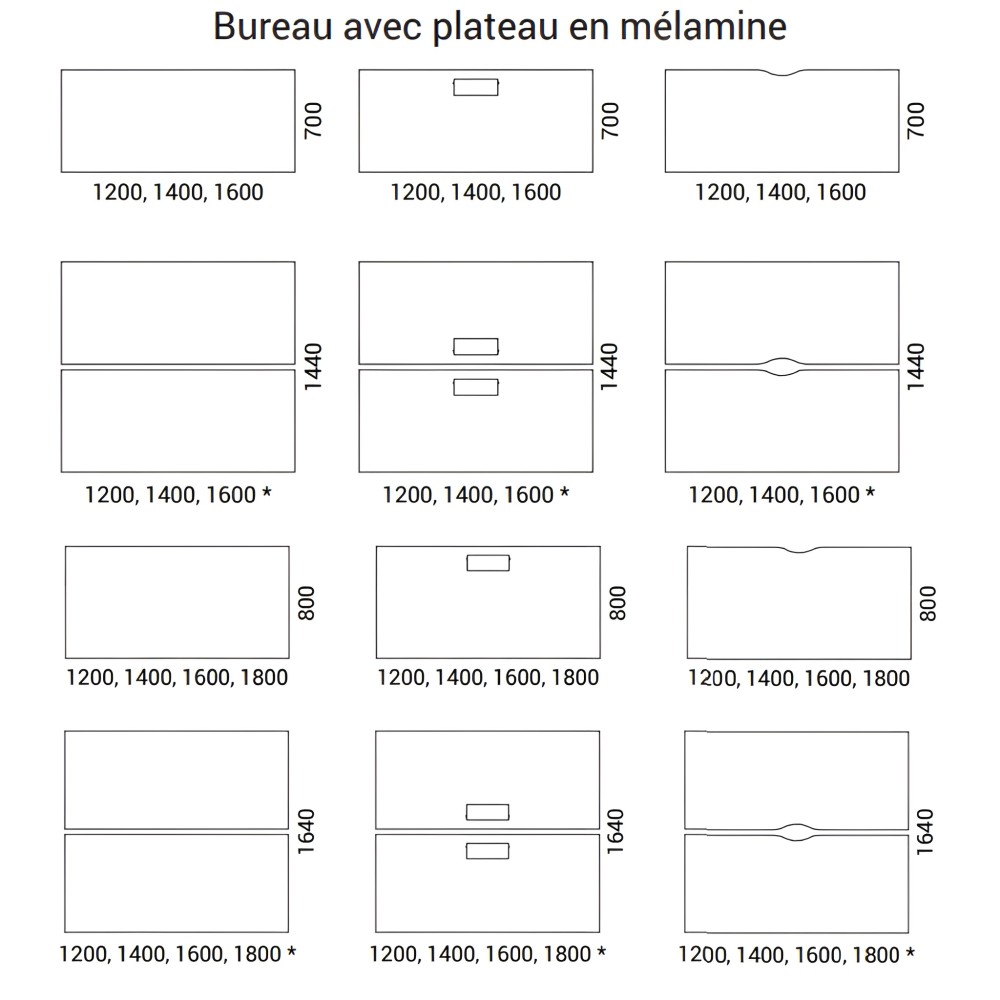 - Profondeur : 700 mm (poste simple) ; 1440 ou 1640 mm (dos à dos, selon version).