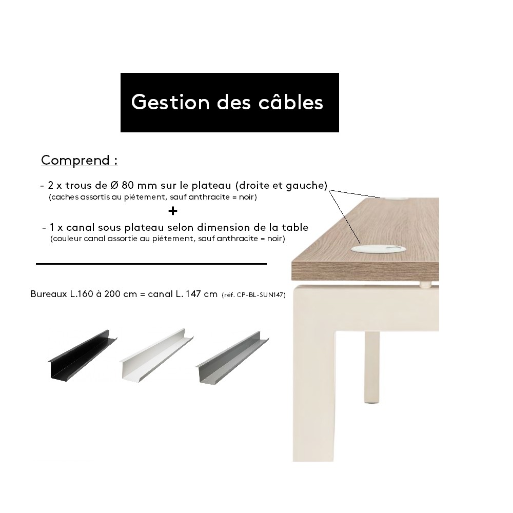 - 2 x trous 80mm (à gauche et droite) - inclus dans le prix canal sous-plateau
