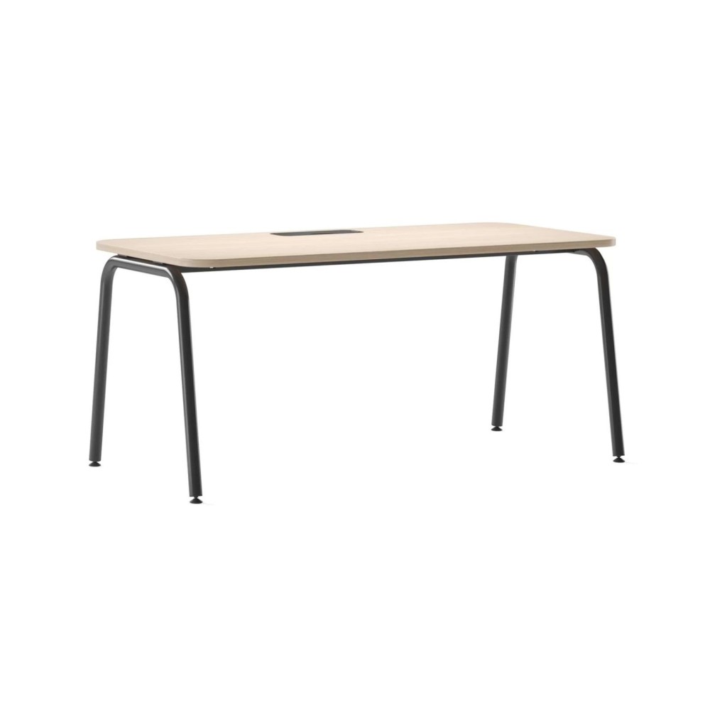 Selon la version choisie, le plateau peut intégrer une découpe pour passage de câbles ou une découpe combinée avec un passe-câble métallique et un bloc d'alimentation encastré. Une façon simple de garder un poste propre sans contraindre l'implantation.
