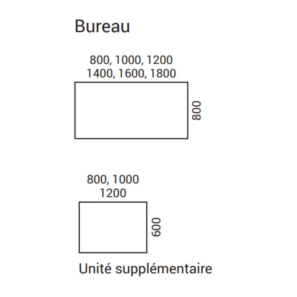 - Longueurs unité supplémentaire : 80, 100 et 120 cm
