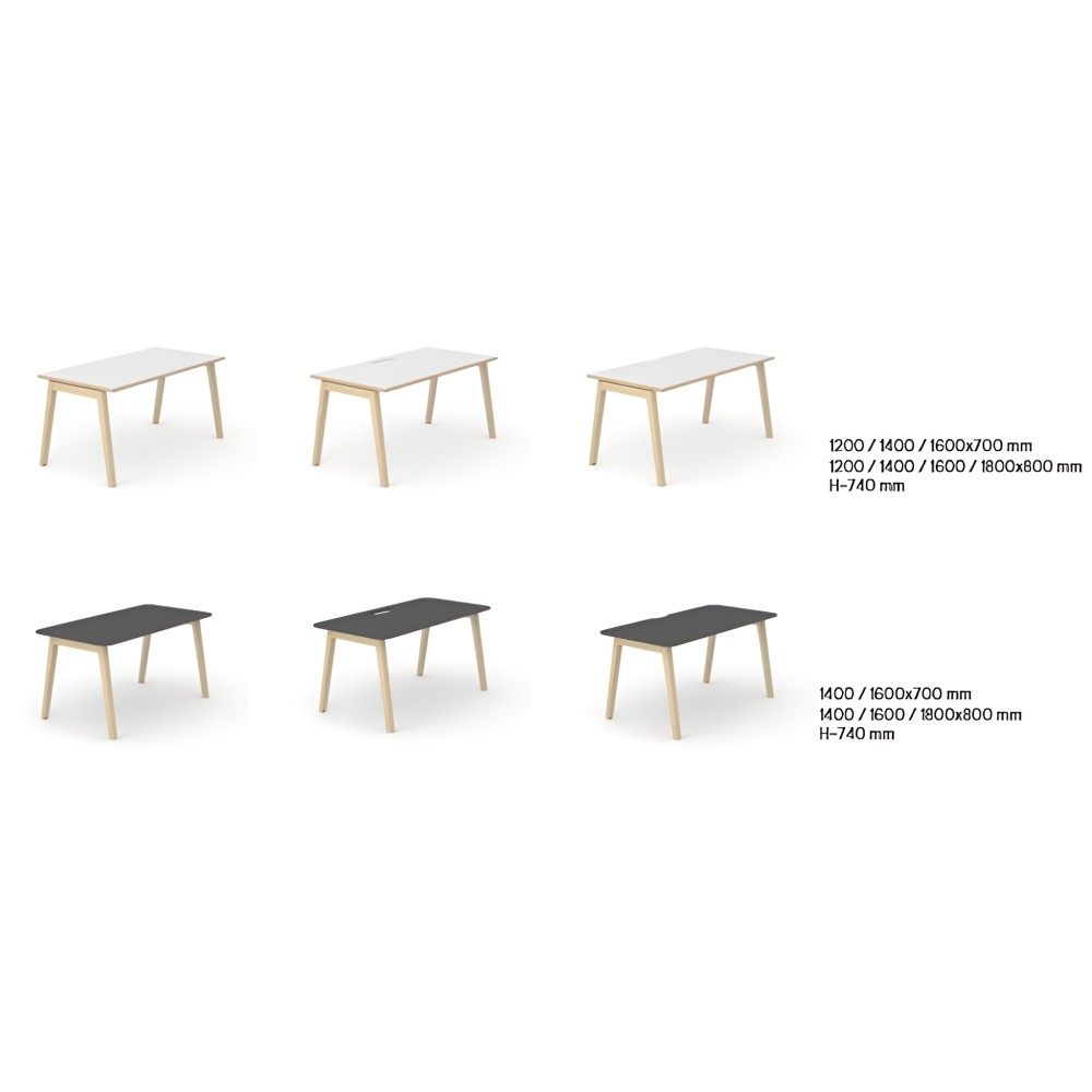 Visuellement, NOVA Wood joue l’équilibre : un plateau clair et minimaliste, des pieds inclinés en frêne qui allègent le volume, et une sous-structure métal qui stabilise l’ensemble. Le plateau existe en deux matériaux : en en mélaminé MFC 25 mm et en MDF 26 mm recouvert HPL, pour mieux s'adapter à tes besoins.