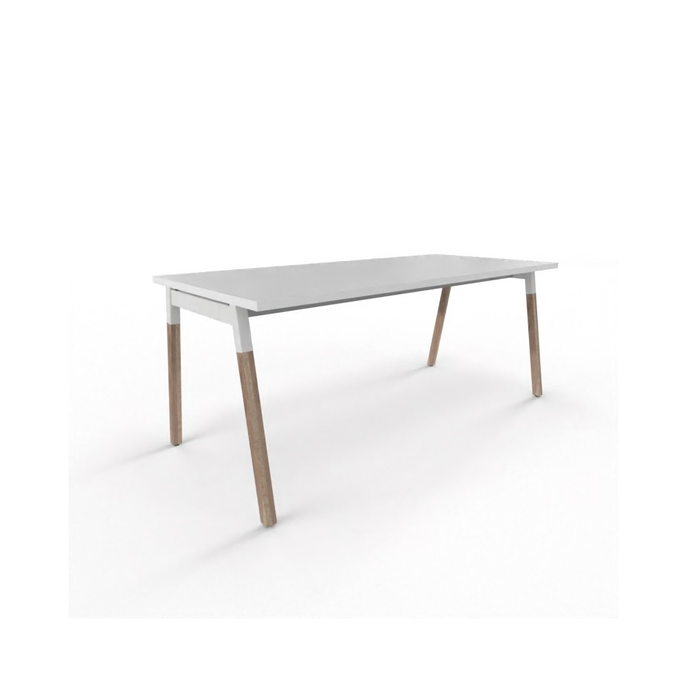 Pied bois en frêne naturel section 40 x 40 mm, finition vernis transparent, avec éléments en métal finition peinture poudre époxy, Entretoise de 10 mm entre le plateau et le cadre