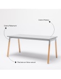 Pied bois en frêne naturel section 40 x 40 mm, finition vernis transparent, avec éléments en métal finition peinture poudre époxy, Entretoise de 10 mm entre le plateau et le cadre