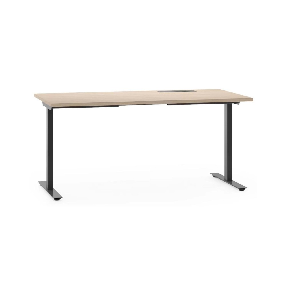 La structure métallique en T permet de dégager complètement la zone sous le bureau. Tu peux bouger plus librement, positionner ton siège facilement et garder une posture plus naturelle. Ce type de piètement est particulièrement apprécié dans les entreprises qui cherchent un mobilier simple, fonctionnel et durable.