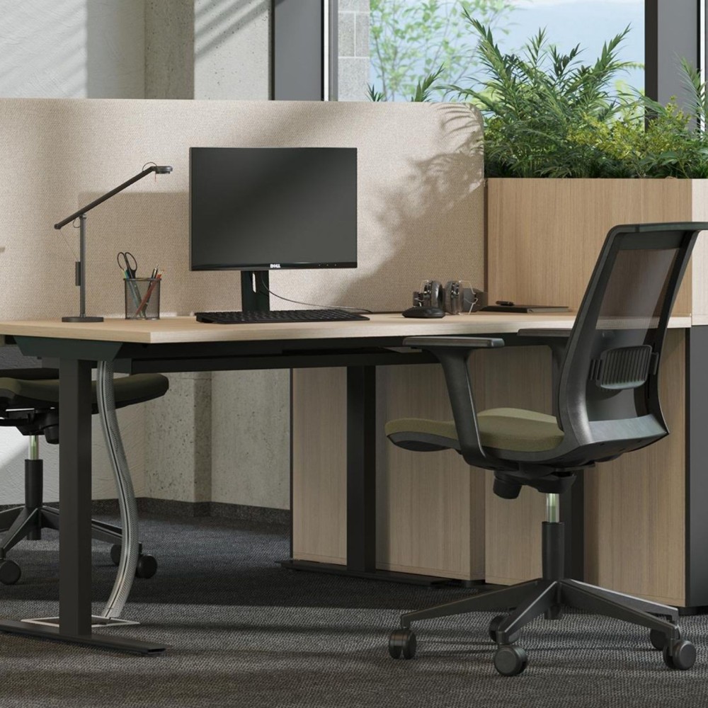 Le bureau droit T-EASY est conçu pour créer un poste de travail simple, efficace et confortable dans un environnement professionnel. Son piètement en T libère l’espace sous le plateau, ce qui améliore la circulation des jambes et le confort au quotidien. Tu profites d’un bureau individuel facile à intégrer dans un open space, un bureau administratif ou un espace de coworking.