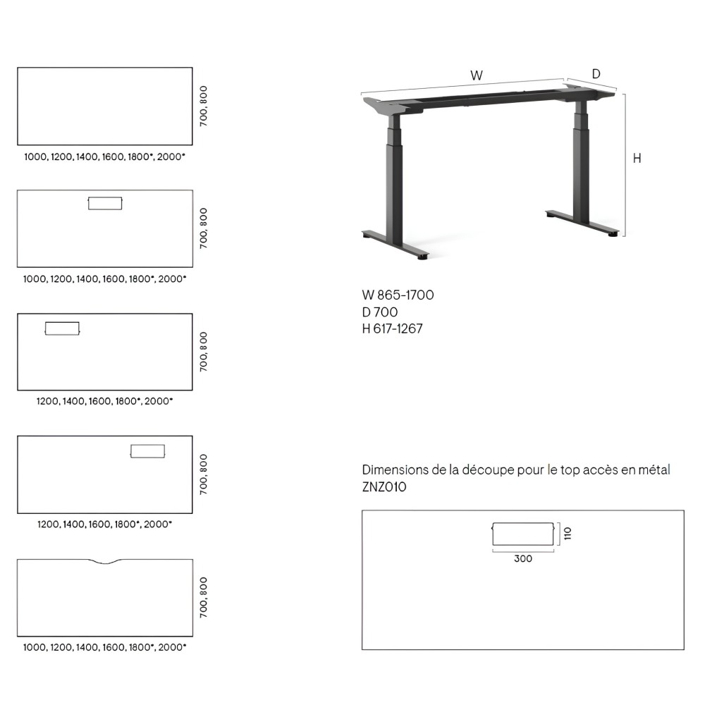 - Profondeur plateau : 700 mm (option 800 mm selon configuration)