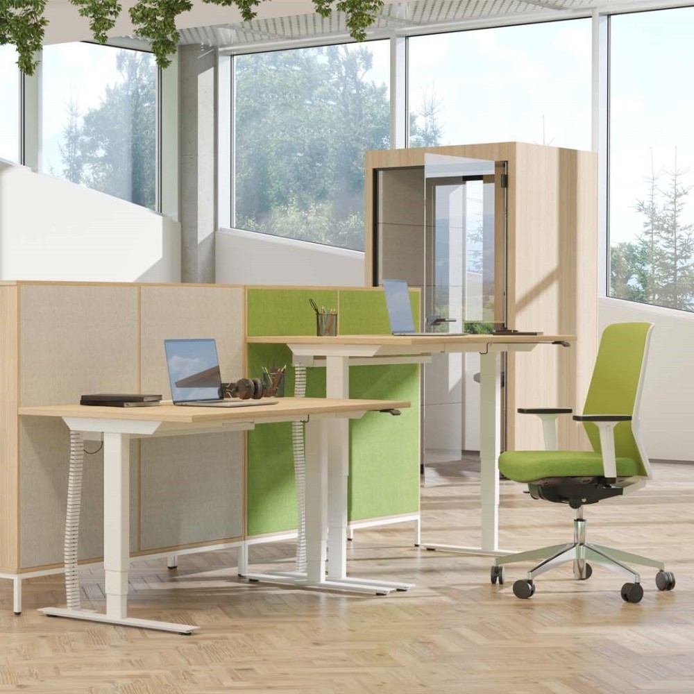 - Bureau assis-debout pour équipes projet et open spaces avec configurations qui évoluent souvent.