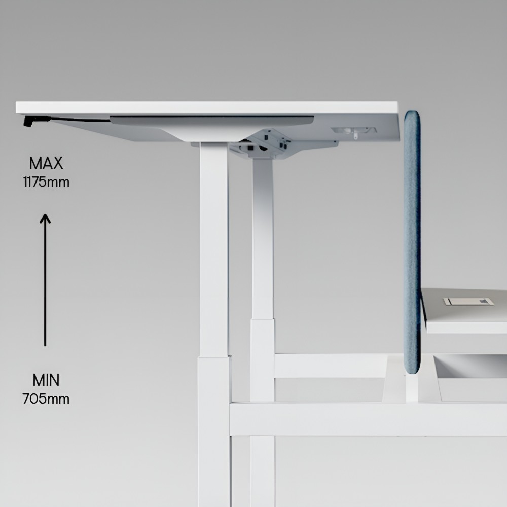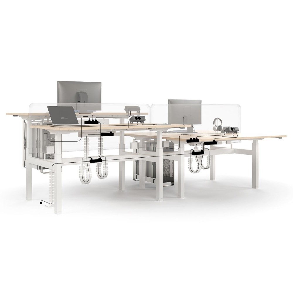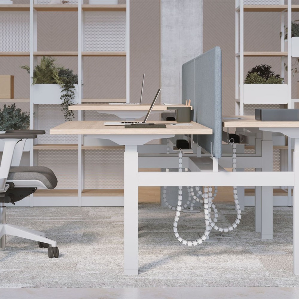 Le B-ACTIVE bench est conçu pour créer des postes de travail partagés plus confortables et plus dynamiques. Grâce à son réglage électrique en hauteur, il permet à chaque utilisateur d’alterner facilement entre position assise et debout au fil de la journée. Dans un open space, cette configuration aide à améliorer le confort de travail, à varier les postures et à mieux accompagner les usages quotidiens des équipes.