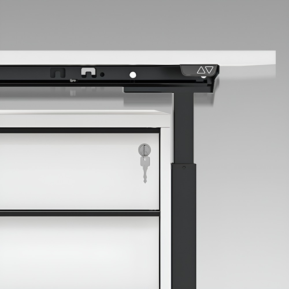 B-ACTIVE permet d’ajuster la hauteur du plateau sur une large plage pour s’adapter à différentes morphologies et à différents rythmes de travail. La plage de réglage est de 705 à 1175 mm, la commande se fait par pression sur un bouton, et comporte une fonction mémoire à deux positions pour retrouver rapidement ses hauteurs préférées. Cela rend le bureau particulièrement pertinent dans les équipes qui alternent tâches concentrées, appels, réunions rapides et temps de production plus longs.