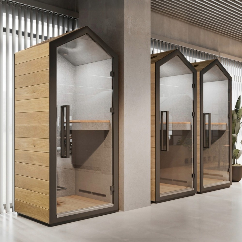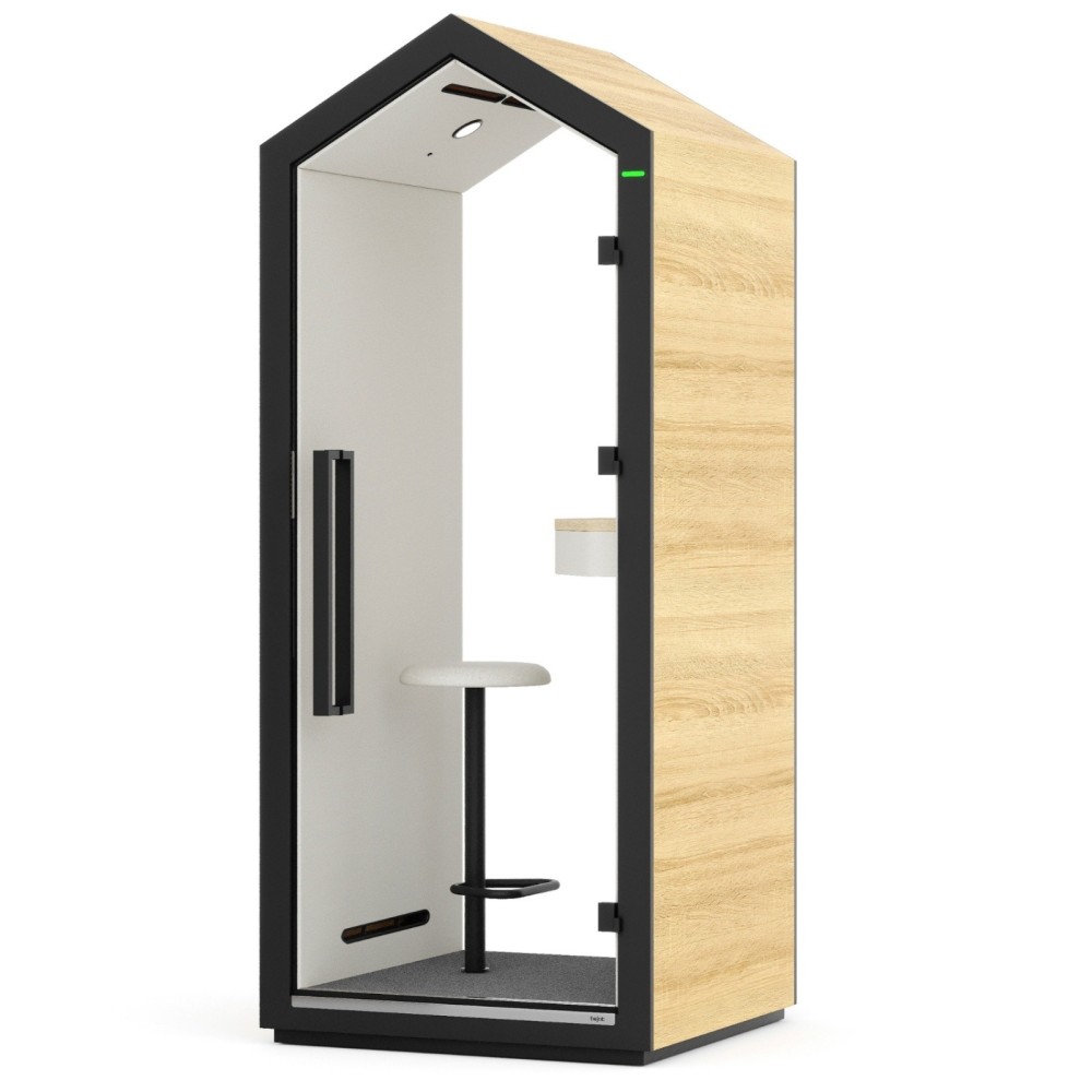 La Treehouse est une cabine acoustique individuelle pensée pour t’offrir un espace calme, privatif et ergonomique au cœur des bureaux ouverts. Son design iconique en forme de petite maison apporte une touche chaleureuse et contemporaine, tout en garantissant une isolation acoustique remarquable. Elle constitue une solution idéale pour passer tes appels téléphoniques, participer à des visioconférences ou t’isoler pour réfléchir, loin du bruit ambiant.