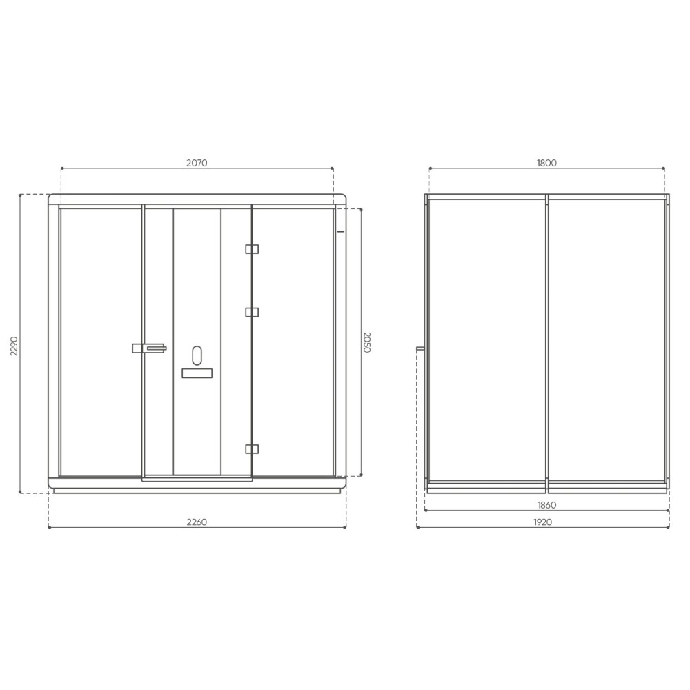 Grâce à une conception soignée et à l’utilisation de matériaux hautement performants, la cabine atteint une isolation acoustique pondérée de 34 dB (Rw) et une réduction du bruit de parole de 31 dB, conforme à la classe A selon la norme ISO 3382-3:2012. Les conversations internes restent parfaitement confidentielles, tandis que les nuisances extérieures sont efficacement atténuées pour garantir une concentration totale.