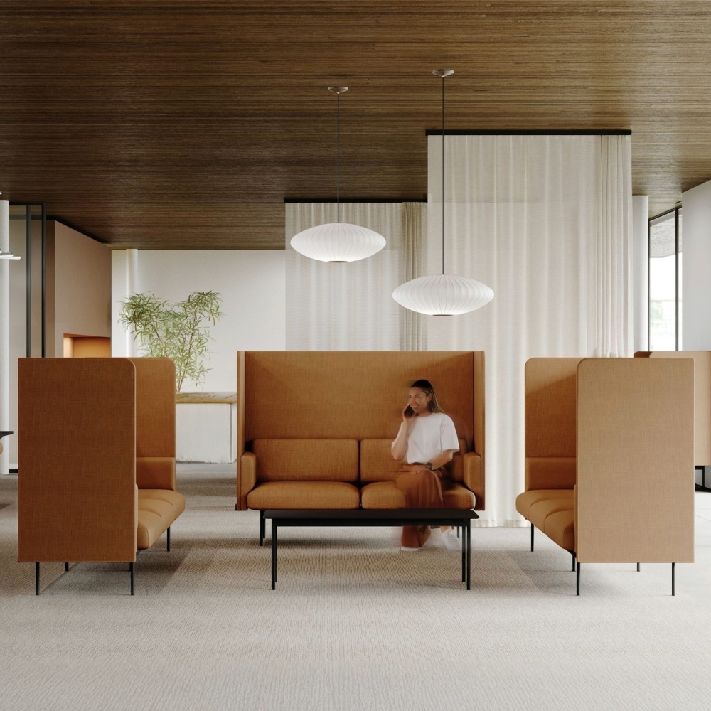 Grâce à son assise généreuse et ses accoudoirs enveloppants, le Fora Office acoustique garantit un confort durable. Les panneaux latéraux et arrière, entièrement tapissés, créent une barrière contre le bruit ambiant, tout en favorisant la concentration et la confidentialité. Ce canapé constitue une véritable bulle de calme au sein des espaces partagés.
