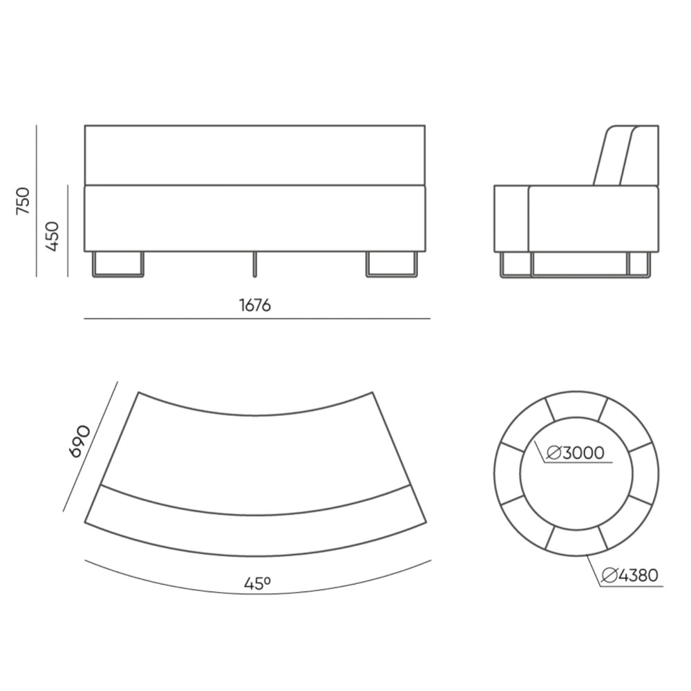 La banquette courbe grand confort avec dossier – Quadra se distingue par son allure fluide et contemporaine. Parfaite pour aménager les zones d’attente, les espaces lounge ou les open-space, elle allie confort d’assise et esthétisme minimaliste.