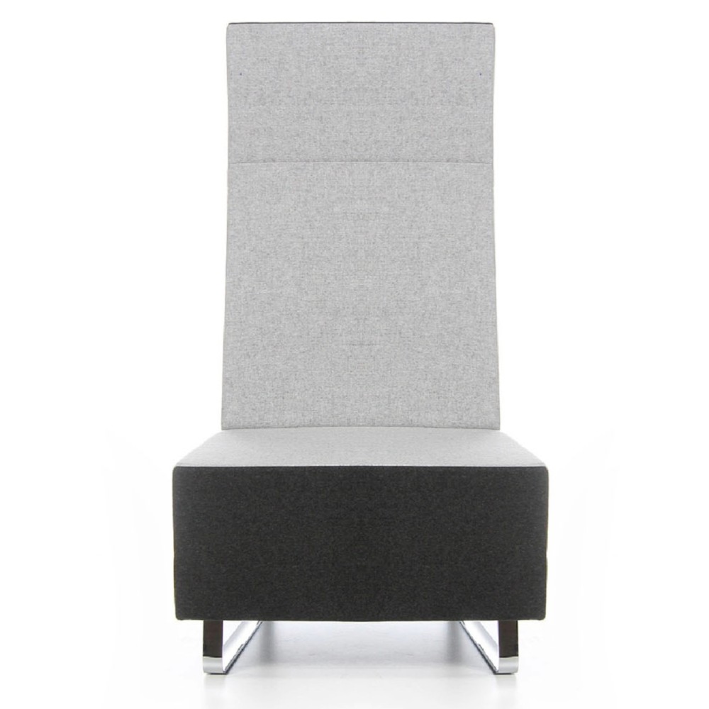 Le dossier haut tapissé assure une excellente absorption sonore, réduisant les nuisances environnantes. L’assise en mousse haute densité offre un confort optimal et une tenue durable, même en usage prolongé.