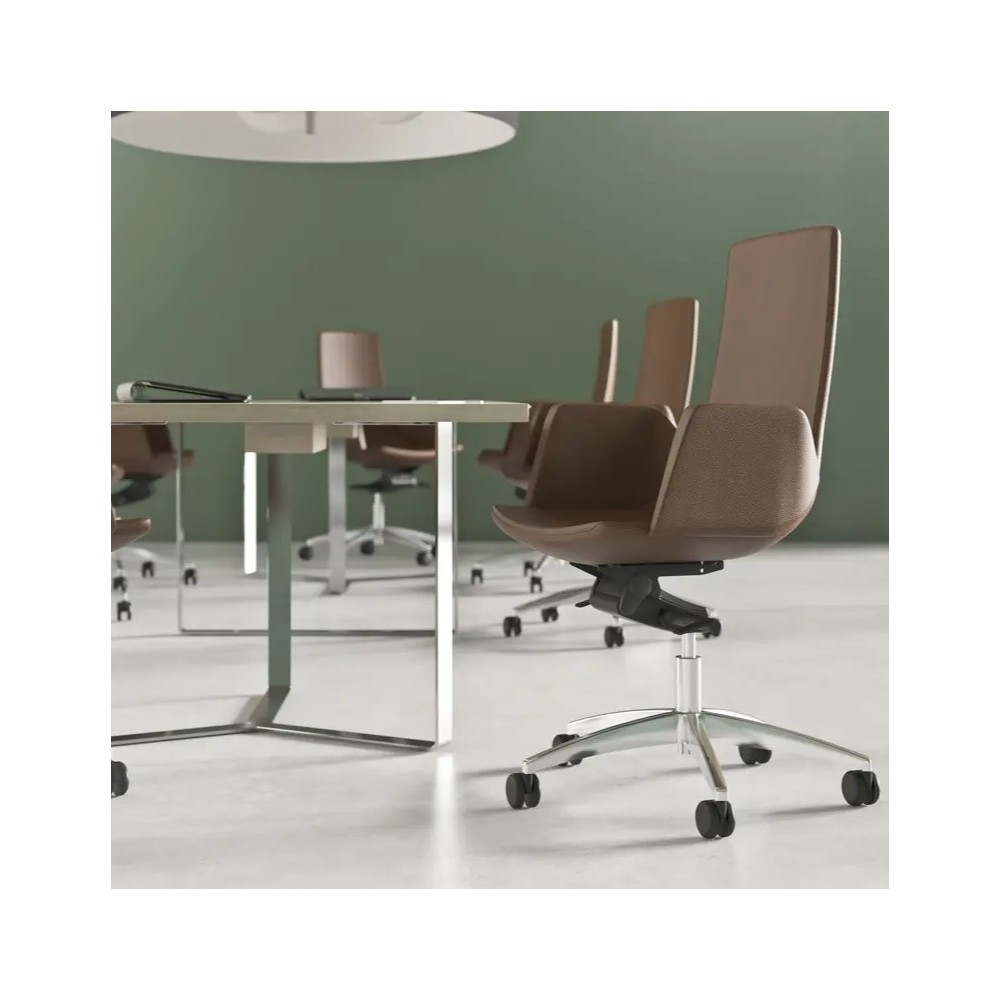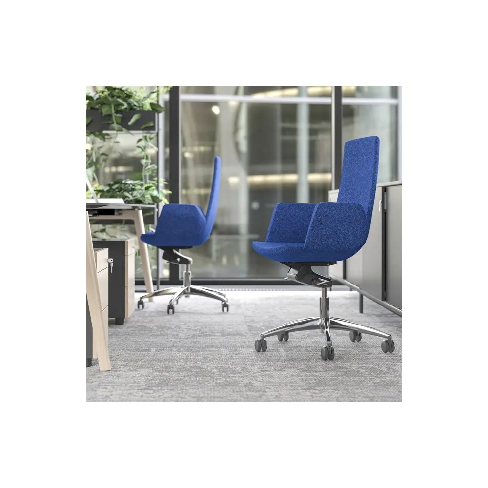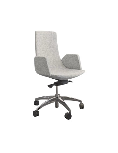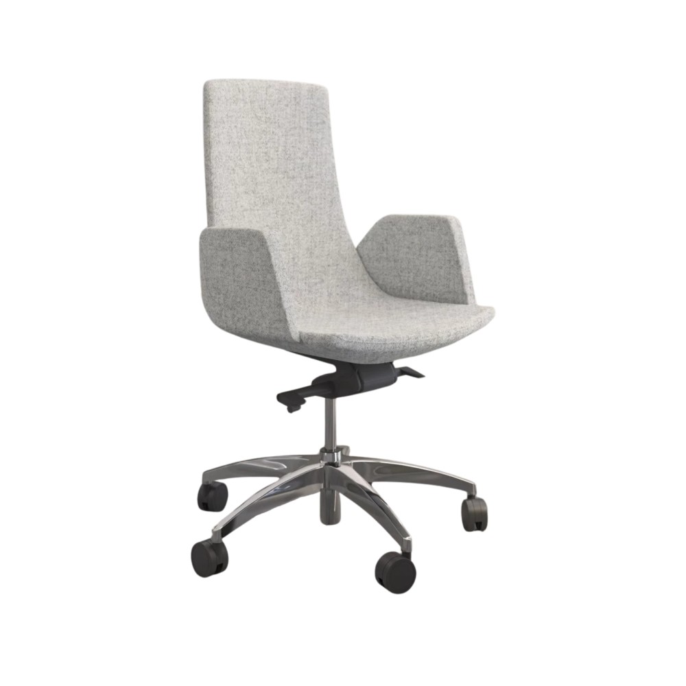 Son dossier incurvé de hauteur moyenne favorise une posture naturelle sans encombrer visuellement l’espace. L’assise est généreuse, les accoudoirs rembourrés soutiennent tes bras, et la version tissu ou cuir s’adapte à ton style de bureau.