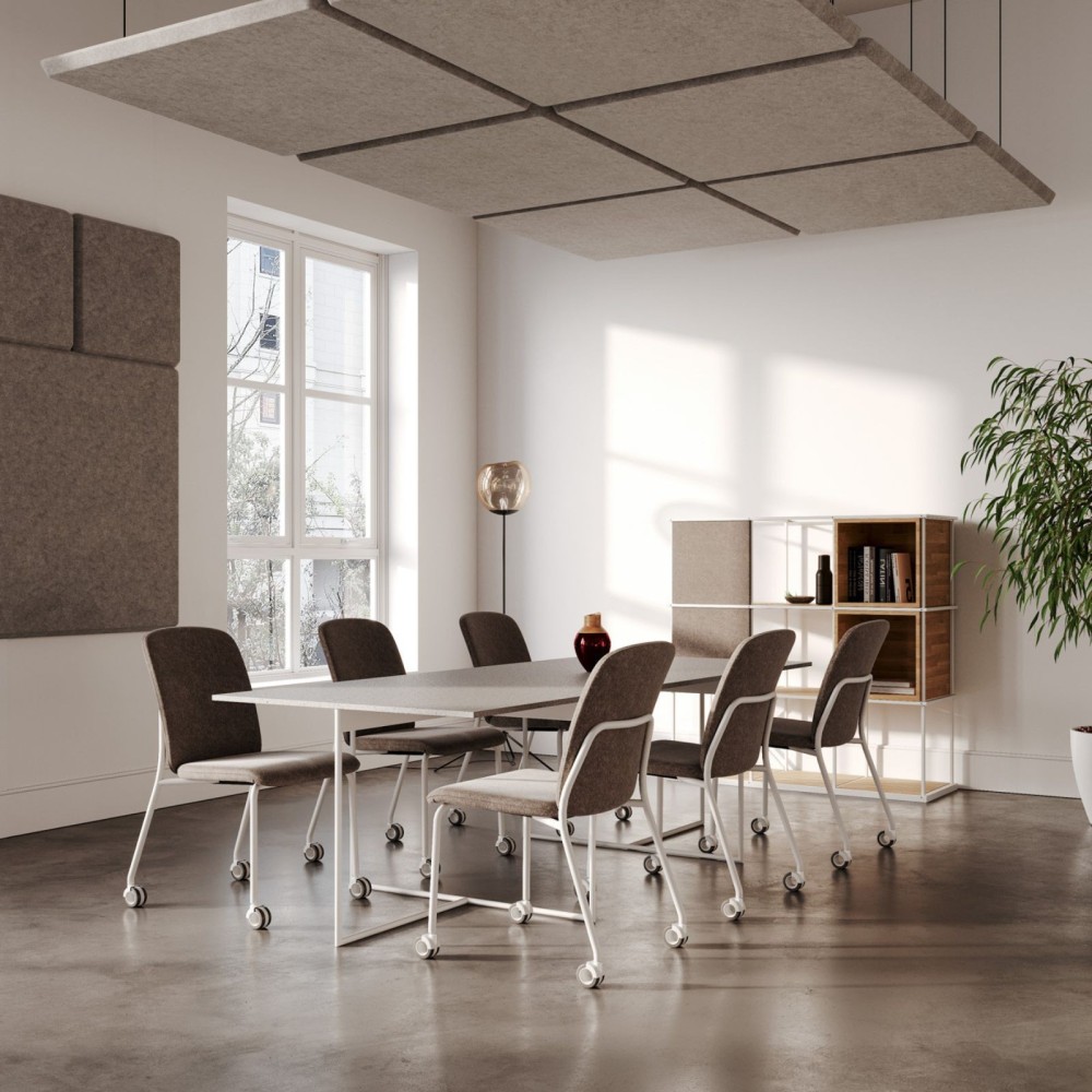 Équipé d’un piètement mobile à quatre roulettes, le siège Hens permet de réorganiser l’espace en quelques secondes. Déplacements fluides, transitions rapides entre travail individuel et travail en groupe : c’est le siège idéal pour les espaces modulaires et les usages intensifs.
