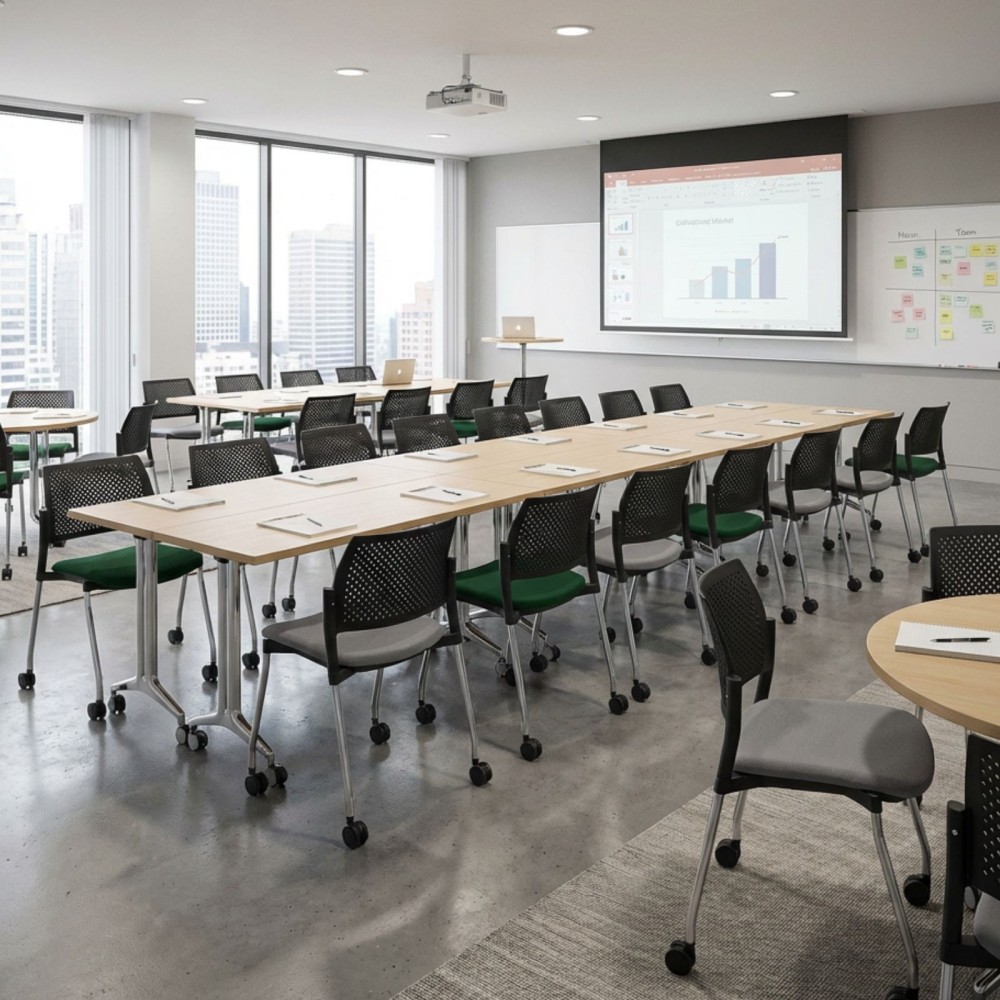 Parce qu’elle te fait gagner du temps et de la flexibilité. Elle facilite les exercices interactifs, les changements de groupes, la collaboration et les méthodes pédagogiques modernes. C’est une solution stable, confortable et durable, sélectionnée pour répondre aux exigences des entreprises suisses, des organismes de formation et des environnements éducatifs qui bougent vite.