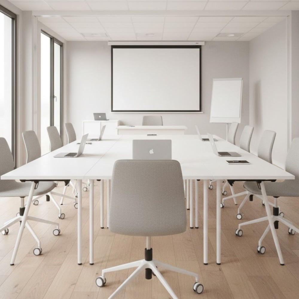 Ces dimensions assurent une bonne compatibilité avec les tables de réunion et postes de travail standards.