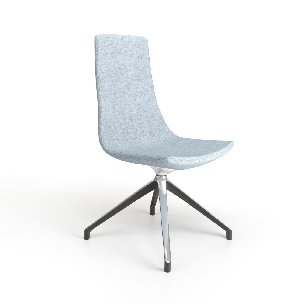 La chaise repose sur une base fixe à 4 pieds, tout en offrant une assise pivotante à 360°. Cette configuration favorise les échanges et les mouvements naturels pendant les réunions, sans l’encombrement d’une base à roulettes.