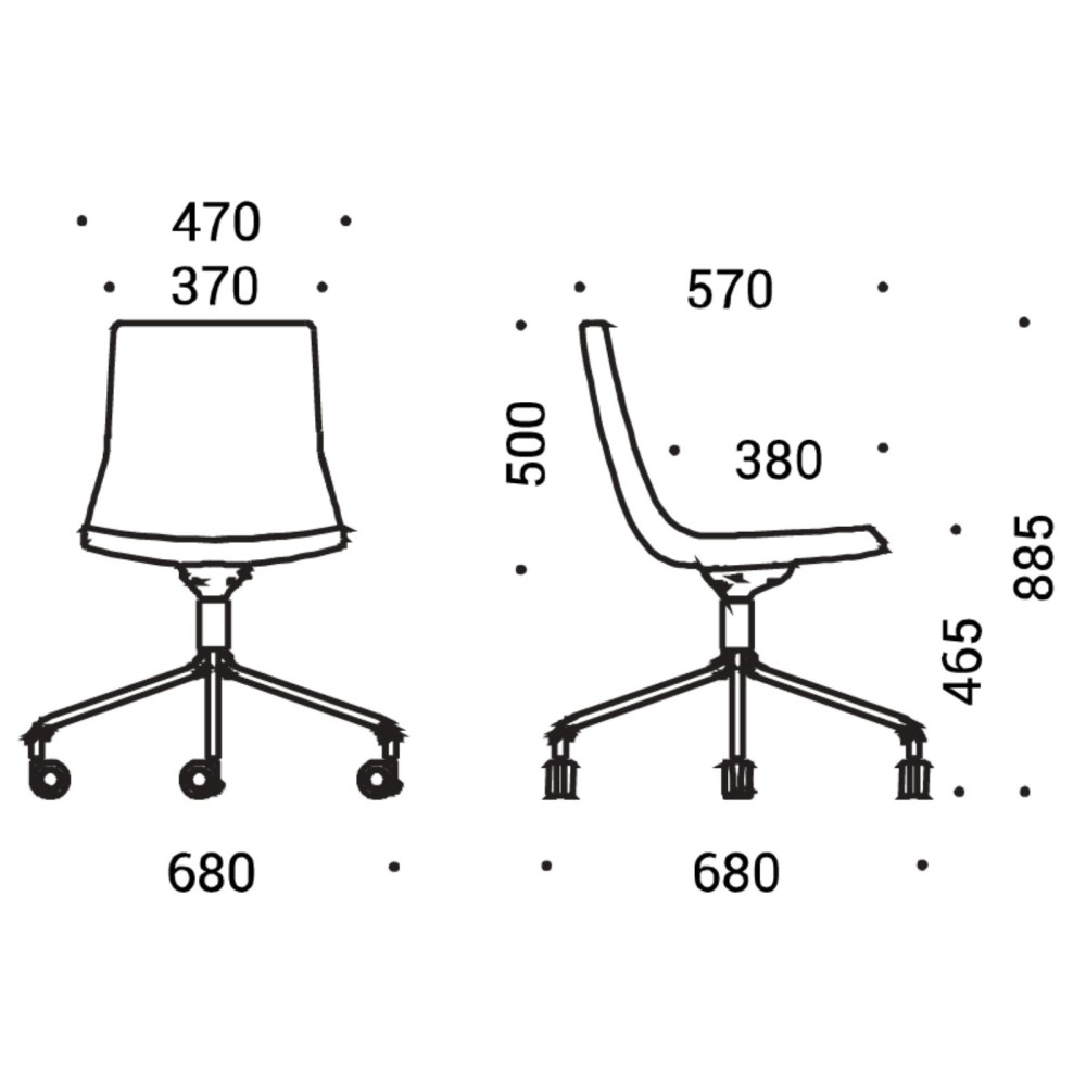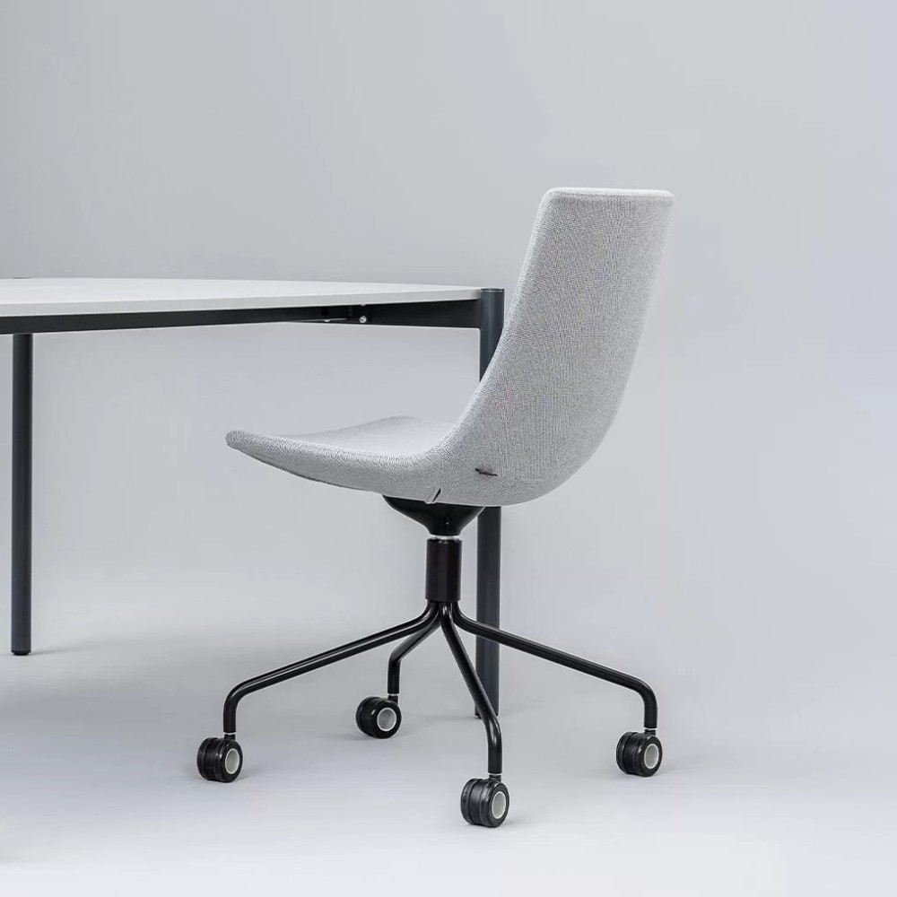 Équipée d’un piètement pyramidal à 4 branches avec roulettes, cette chaise est pensée pour une utilisation agile. Tu peux te déplacer facilement entre différents postes de travail, autour d’une table de réunion ou dans un espace de brainstorming.