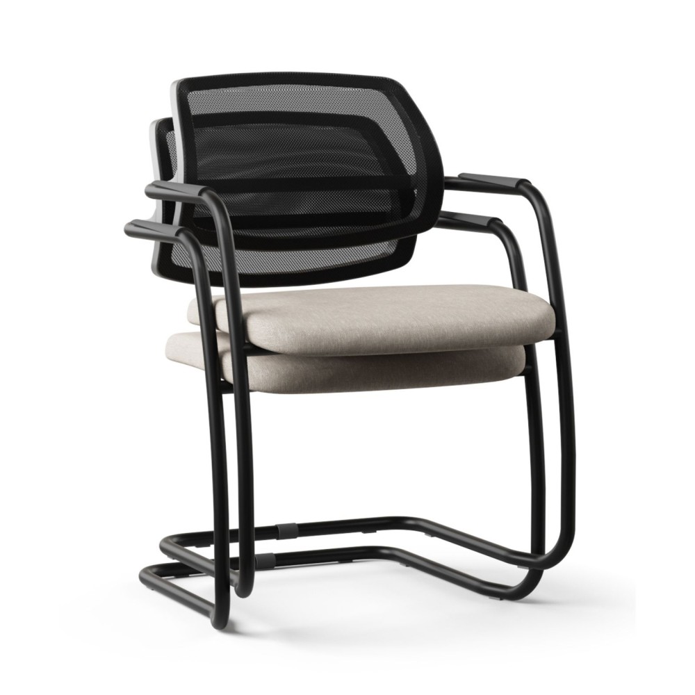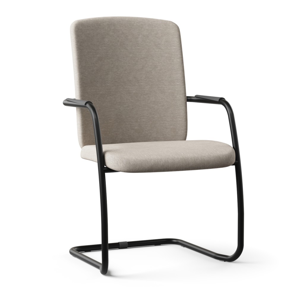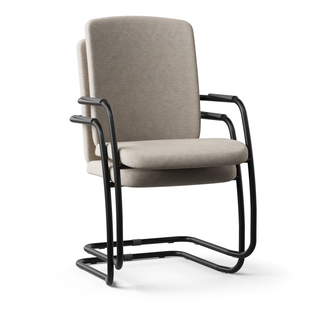 - Piètement luge (cantilever) pour un confort renforcé, disponible avec un dossier haut
