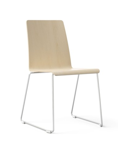 La chaise Moon Wood est une solution idéale pour aménager une salle d’attente, un espace détente ou une salle de réunion avec sobriété et élégance. Sa coque monobloc en bois cintré et son piètement traîneau en métal chromé lui confèrent une silhouette légère, résistante et facile à entretenir.