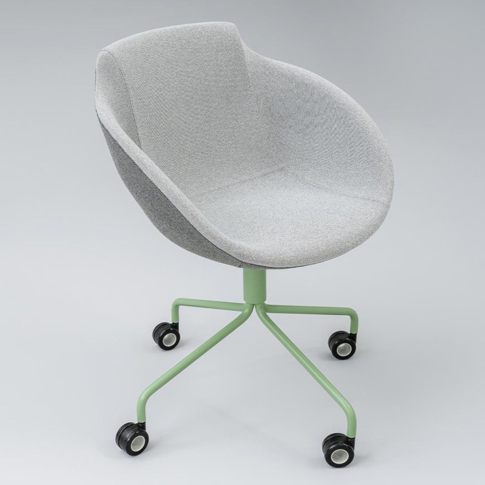 Avec sa coque enveloppante et son piètement mobile, la chaise Tula sur roulettes combine fonctionnalité et esthétique pour des environnements dynamiques et collaboratifs.