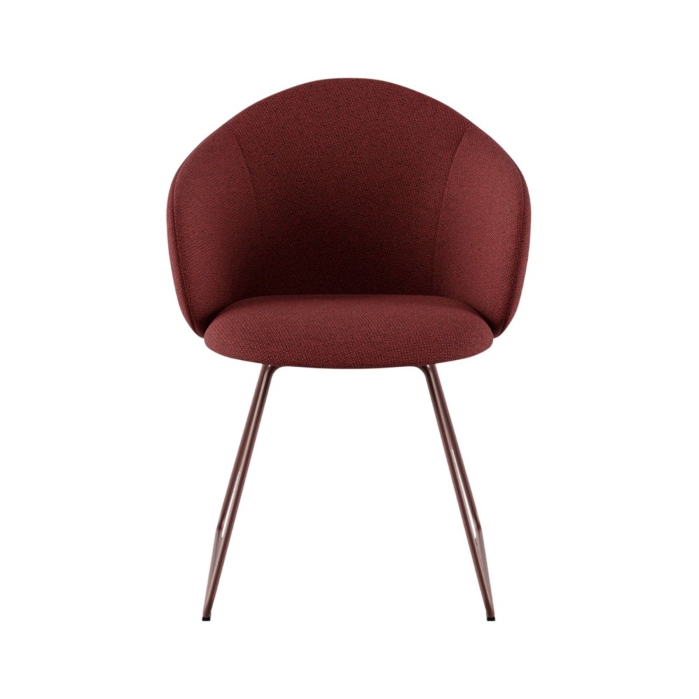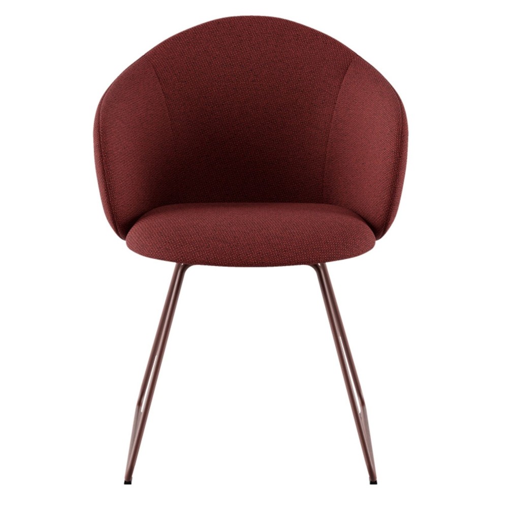 Entièrement tapissée, la chaise allie confort et esthétique. Le piètement métallique assure robustesse et durabilité, tandis que les accoudoirs renforcent la sensation de confort et favorisent une posture détendue.