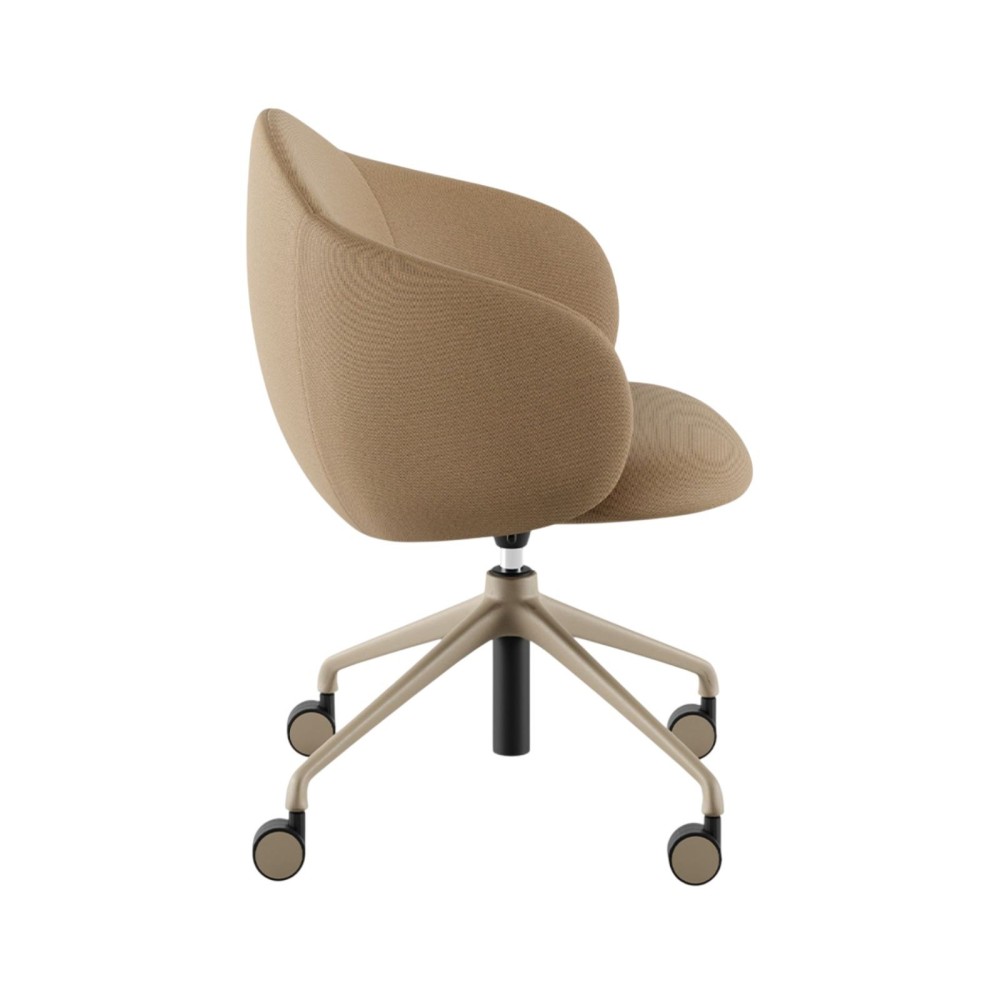 La chaise Volta avec accoudoirs, roulettes et réglage en hauteur est une assise pensée pour répondre aux besoins des espaces de travail modernes. Elle associe confort enveloppant, mobilité fluide et réglages ergonomiques pour offrir une expérience optimale au quotidien. Que ce soit en bureau individuel, open space ou salle de réunion, elle combine design élégant et fonctionnalité.