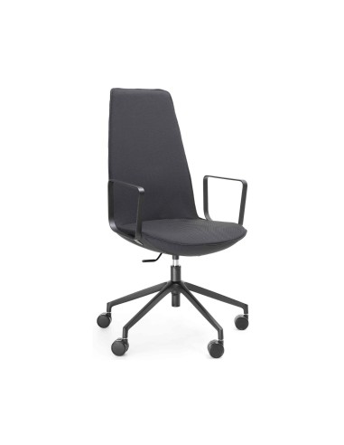 Ce fauteuil est équipé d’un piètement à roulettes pour une mobilité fluide, ainsi que d’un mécanisme de réglage en hauteur pour s’adapter à tous les utilisateurs. Le rembourrage généreux et le dossier haut garantissent un excellent maintien lombaire, même lors de longues réunions.