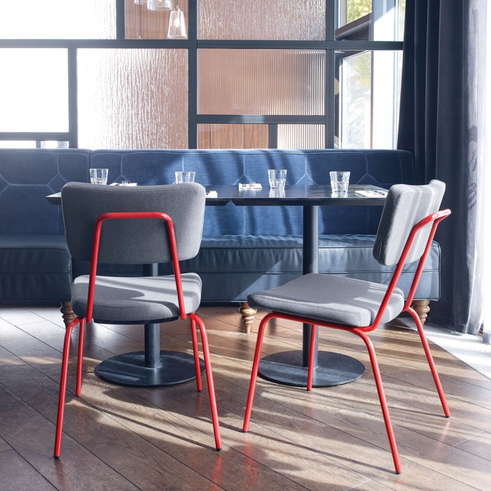 Le dossier légèrement incurvé épouse naturellement la forme du dos, tandis que le large coussin d’assise assure un confort optimal, même lors de longues sessions de travail ou de réunion. L’assise peut être habillée de deux teintes différentes, pour une personnalisation harmonieuse de ton espace.