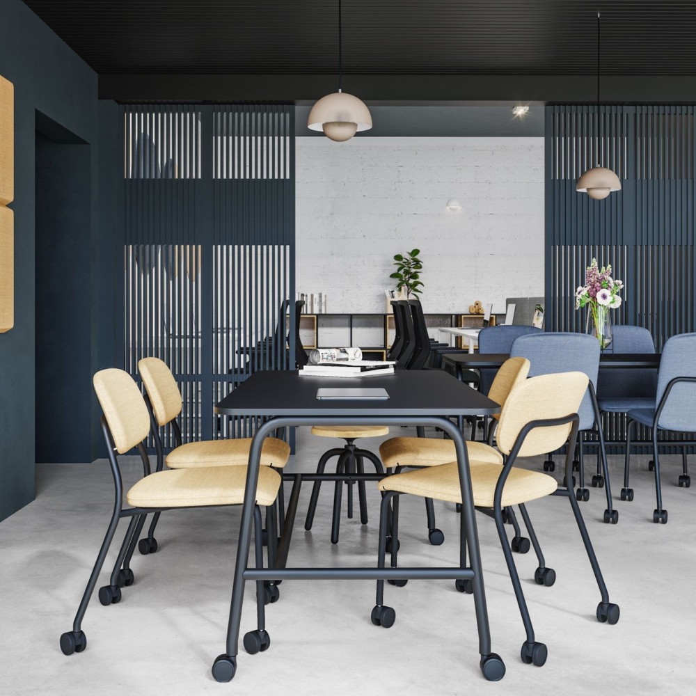 Légère, empilable jusqu’à 4 unités et disponible avec roulettes adaptées à différents types de sols, la Hens est pensée pour la mobilité et l’usage intensif. Sa structure tubulaire en acier peint garantit robustesse et stabilité, tandis que son assise confortable permet une utilisation régulière dans les salles polyvalentes, salles de réunion, amphithéâtres ou zones de restauration.