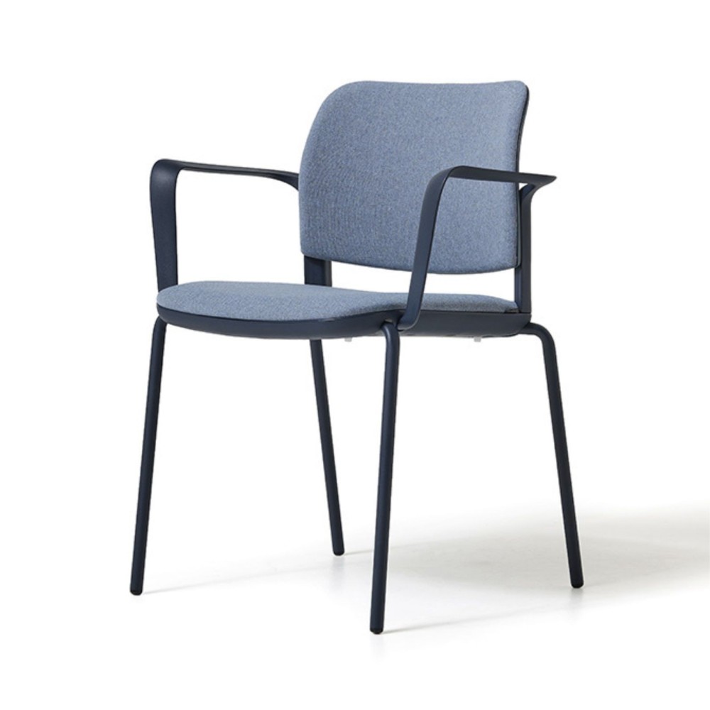 Selon les besoins, la chaise peut être configurée avec une assise capitonnée, un dossier capitonné ou un dossier en maille, permettant d’ajuster le niveau de confort et la perception visuelle.