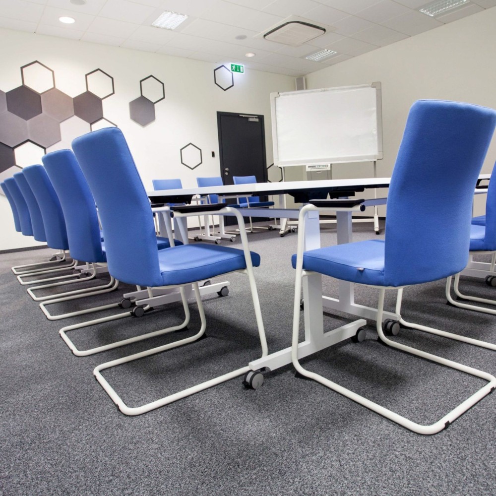 La chaise Mate est conçue pour équiper les salles de réunion, espaces de conférence et zones d’accueil professionnelles nécessitant une assise confortable, stable et durable.