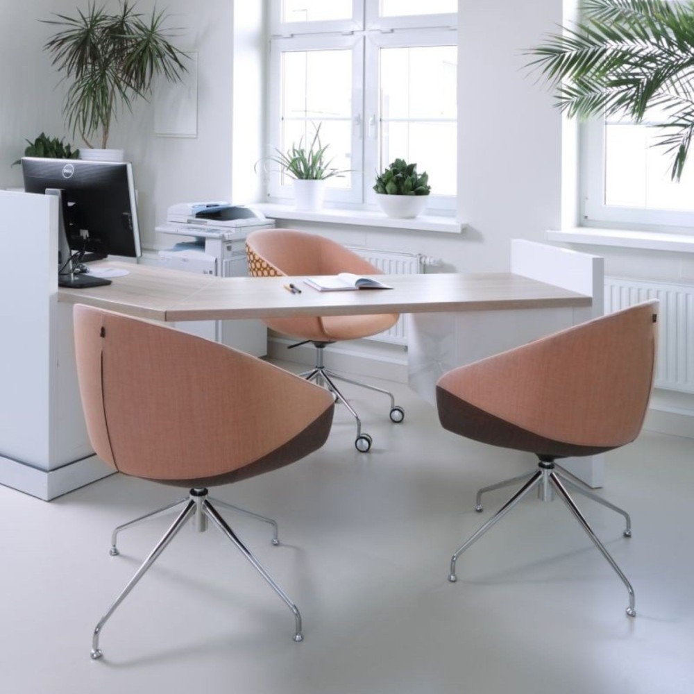 Le fauteuil Ox:co OX 4R est conçu pour les salles de réunion, espaces de conférence et bureaux de direction où le confort d’assise et l’esthétique du mobilier sont essentiels. Sa coque tapissée enveloppante associée à une base pivotante à quatre branches crée un fauteuil de réunion élégant et confortable qui s’intègre parfaitement dans les environnements professionnels contemporains.