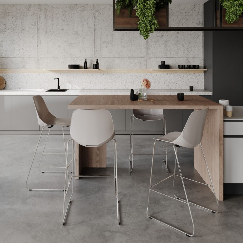Son format permet une circulation fluide autour des tables hautes tout en garantissant une posture confortable.