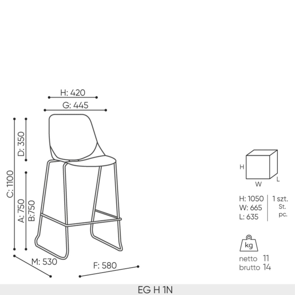 Grâce à sa structure stable et à son format adapté aux tables hautes, la chaise EG H répond parfaitement aux contraintes des environnements professionnels.