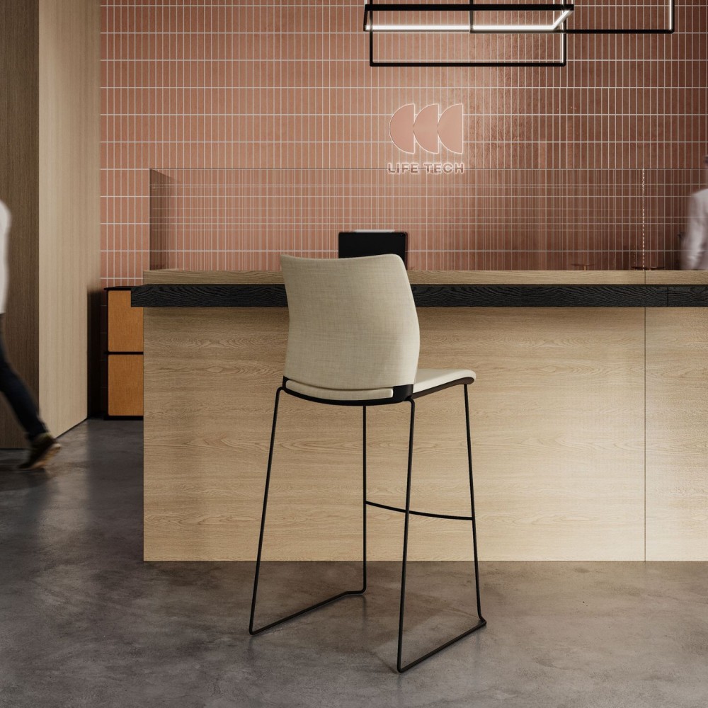 La ligne droite et affirmée de la chaise haute Fendo apporte une touche contemporaine aux espaces collectifs.